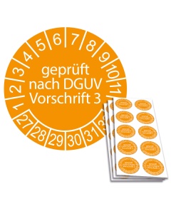 Prüfplakette geprüft nach DGUV 2027, Ø 30mm, 10/Bogen, in Jahresfarbeab 1,05€ pro BogenInkl. 19% SteuernLieferzeit:1 - 3 Werktage -
